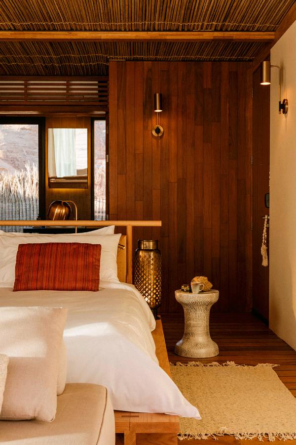 Das luxuriöse Habitas AlUla Resort fügt sich nahtlos in die atemberaubende Landschaftsszenerie von Al Ula ein, mit dem Fokus auf Nachhaltigkeit. Alle 100 Unterkünfte sind luxuriöse ausgestattet, liebevoll mit lokalen Artefakten dekoriert und verfügen über eine private Terrasse, von der man abends die funkelnden Sterne am Wüstenhimmel beobachten kann.