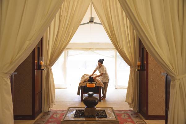 Im ruhigen Ambiente des Spa-Zelts kann man wunderbar die Seele bei wohltuenden Massagen und Wellnessbehandlungen baumeln lassen. Wer mehr über den Ranthambore Nationalpark sowie die beeindruckende Tierwelt erfahren möchte, findet interessante Bücher in dem Lounge-Zelt. Wenn es dunkelt wird, verzaubern kleine Lämpchen das schöne Camp-Areal und die lodernden Flammen des Lagerfeuers lassen eine einmalige Atmospäre entstehen. Hier kann man mit einem Drink in der Hand und unter dem leuchtenden Sternenhimmel perfekt mit anderen Campgästen sich über seine Safari-Erfahrungen im Ranthambore Nationalpark austauschen.