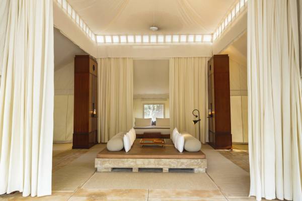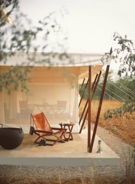 Die klimatisierten Luxuszelte, die im Moghulstil errichtet und mit elegantem Interieur, maßgefertigten Teakholzmöbeln und cremigen Baumwollvorhängen eingerichtet sind, bieten Resortgästen den Komfort eines Luxushotels. Kleine Terrassen mit Sitz- und Liegemöglichkeiten laden zusätzlich zum Verweilen ein. Ein persönlicher Butler liest einem zudem jeden Wunsch von den Augen ab! Ein glitzernder quadratischer Pool lädt nach einer spannenden Safari zum Erfrischen und die schattigen Sonnenliegen zum Entspannen ein.