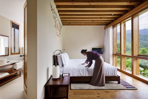 Das COMO Uma Punakha liegt majestätische inmitten einer reizvollen Landschaft, oberhalb eines kleinen Hügels mit einem atemberaubenden Ausblick auf das Punakha-Tal und den Mo-Chu-Fluss. Das noble COMO Uma Punakha ist eine kleine Luxusoase und ein Ort der Ruhe im buddhistischen Königreich Bhutan.