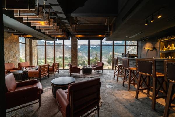 Das außergewöhnliche Anwesen bringt Luxus nach Mustang. Die 29 Zimmer der Lodge, die nachhaltig aus Holz, Schiefer und Stein aus der Region gebaut wurden, sind von traditionellen tibetischen Einflüssen inspiriert. Vom Boden bis zur Decke reichende Fenster bieten einen atemberaubenden Blick auf die zerklüfteten Hänge des Mount Nilgiri, während weiche, handgewebte Stoffe für Wärme und Farbe im Inneren sorgen. Das charakteristische Design des berühmten Architekten Bill Bensley gibt dem Ganzen den letzten Schliff: erdige Töne, die die umliegende Landschaft widerspiegeln.