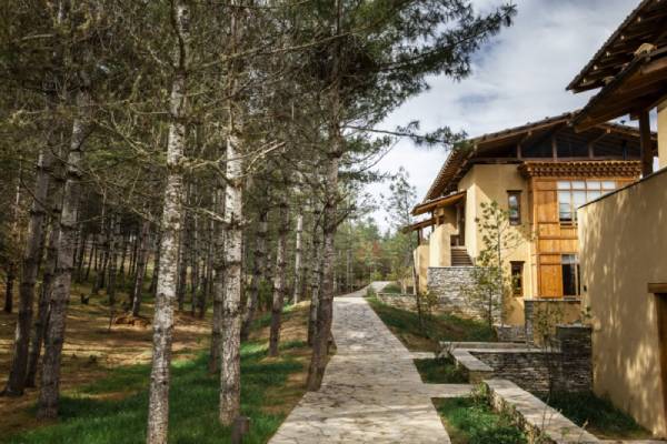 Das exklusive Anwesen befindet sich auf dem Gelände alter Steinruinen aus dem 12. Jahrhundert und auf einem Bergrücken oberhalb des Nationalmuseums von Paro mit einem wunderschönen Blick auf das Tal und die dahinterliegenden Berge.