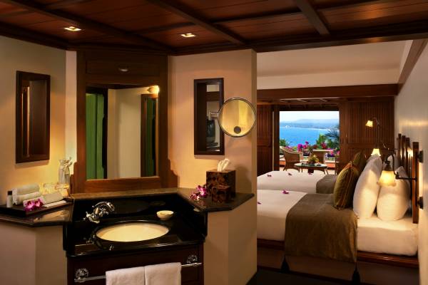 Die eleganten Zimmer und Suiten im Raviz Kovalam versprechen einen luxuriösen Aufenthalt in Kovalam mit einem wunderschönen Panoramablick auf den Ozean oder das üppige Grün.