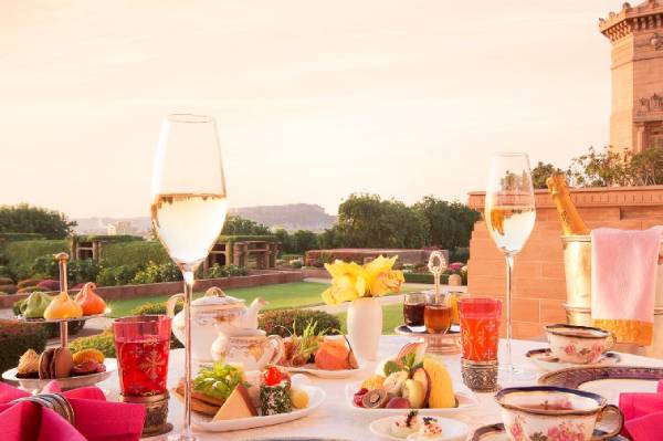 Bis 1943 residierte in den prunkvollen Mauern die Maharadscha-Familie Jodhpurs. Bis heute sind bestimmte Traktbereiche des Palastes für die königliche Familie vorgesehen und stehen nicht dem luxuriösen Hotelbetrieb zur Verfügung. Hotelgäste können zwischen 64 luxuriöse Zimmer und Suiten wählen, die im Art Déco-Stil sowie mit einer prunkvollen Inneneinrichtung glänzen.