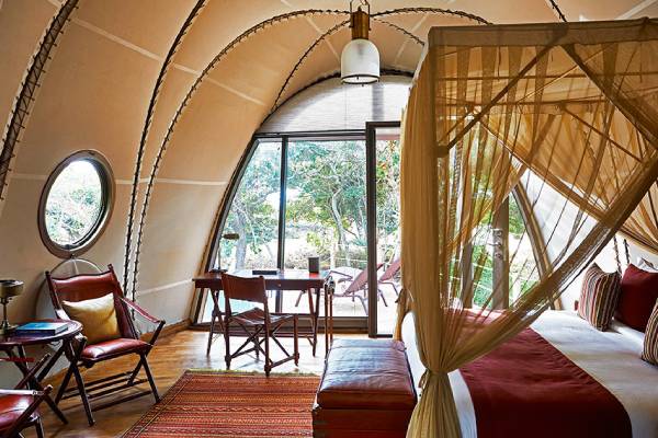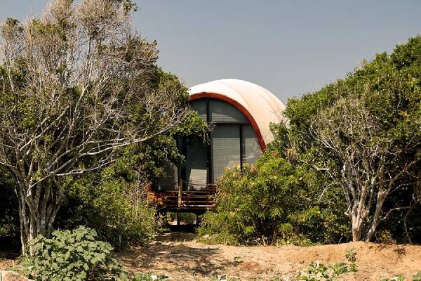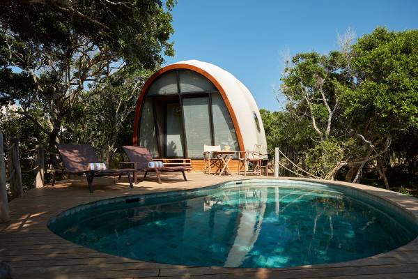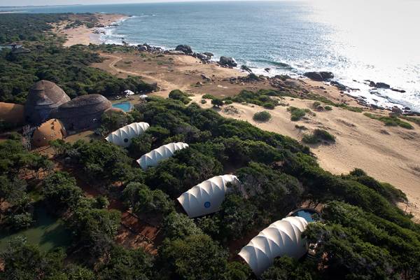 Die Wild Coast Tented Lodge mit ihren 28 kokonartigen Zelten wurde von einem Konsortium aus niederländischen, englischen und sri-lankischen Designern entworfen. Das einzigartige Design sieht vor, dass sich die von Menschenhand geschaffenen Strukturen dank der Verwendung sorgfältig ausgewählter natürlicher Materialien nahtlos in die umliegende Landschaft einfügen.