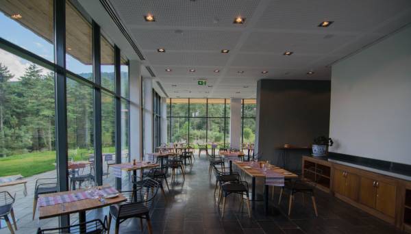Im hauseigenem Restaurant werden den Hotelgästen kulinarische Erlebnisse geboten. Das Restaurant mit deckenhohen Fenstern und wunderbaren Panoramablick auf den umliegenden Wald und das Tal serviert saisonale Küche aus der bhutanesischen Küche mit frischem Bio-Gemüse aus dem Gemüsegarten. Daneben werden köstliche Gerichte aus der indischen, thailändischen, chinesischen und kontinentalen Küche angeboten. Das Restaurant verfügt über eine angeschlossene und gut sortierte Bar-Lounge, in der man einen leckeren Drink genießen und den Tag entspannt ausklingen lassen kann.