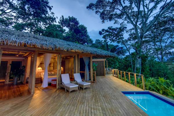 Zur weiteren Hotelausstattung gehören ein Swimmingpool mit Panoramasicht sowie ein kleiner Spa-Bereich. Es ist ein Genuss die Stille zu genießen, die nur von den Geräuschen der tierischen Bewohner des Dschungels und dem Rauschen des Meeres unterbrochen wird.