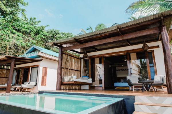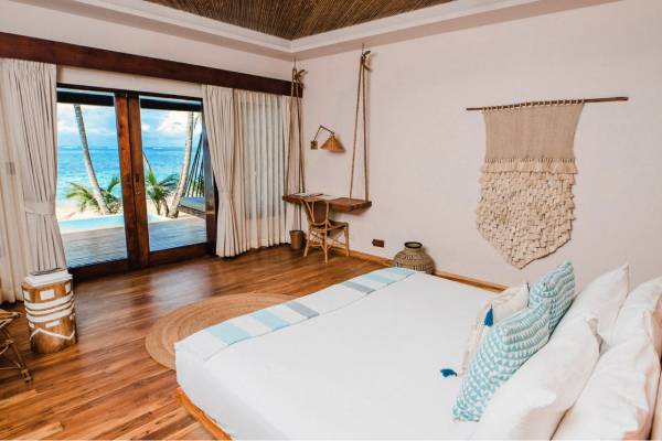 Jede der 16 Ocean Suiten liegt direkt am Meer, eingebettet zwischen hoch aufragenden Kokospalmen, die sich atemberaubenden weißen und palmengesäumten Sandstränden befinden.