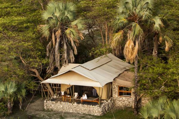 Jedes der acht luxuriösen Zelte bietet ein elegantes Schlafzimmer, ein wunderschön ausgestattetes Badezimmer, eine Außendusche sowie eine Holzterrasse, die sich perfekt für entspannende Nachmittage oder Abende eignet. Der diskrete Service ist persönlich und auf die Bedürfnisse der Campgäste zugeschnitten, sei es ein romantisches Dinner zu zweit im Busch oder eine entspannende Massage im Schatten eines Baobab-Baumes.