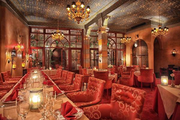 Tauchen Sie ein in den Charme einer vergangenen Epoche und in einen prächtigen Komfort, der eine elegante Mischung aus marokkanischem und europäischem Design darstellt. Genießen Sie im La Maison Arabe die lange Tradition der raffinierten marokkanischen Gastronomie sowie internationalen Köstlichkeiten. Lassen Sie sich in der weltberühmten Kochschule des Hotels in die Feinheiten der marokkanischen Küche einweihen, wo erfahrene einheimische Köche ihre jahrhundertealten kulinarischen Geheimnisse verraten.