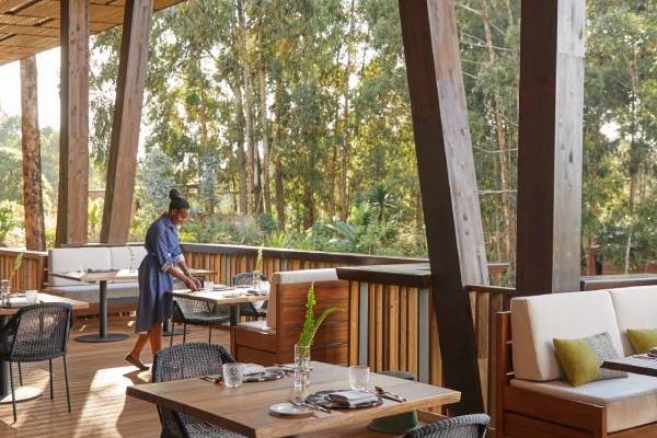 Das hauseigene Restaurant Nest verwendet saisonale, lokale Produkte aus den umliegenden Bio-Gärten, um ruandisch inspirierte Gerichte zu kreieren. Die angeschlossene Bar bietet eine charmante Lounge mit Blick auf das Gelände und ein Kamin spendet Wärme in den kühleren Monaten.