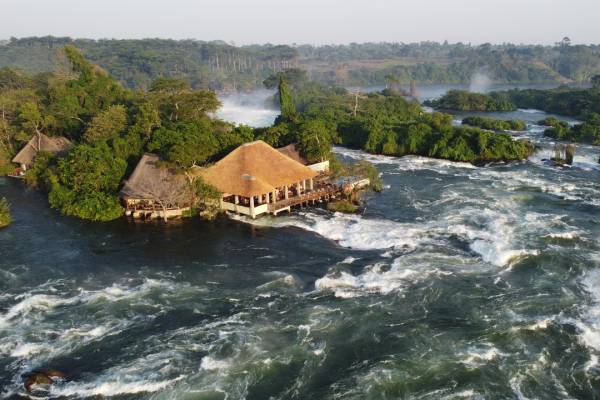 Die bezaubernde Wildwaters Lodge befindet sich auf einer eigenen privaten Insel mitten im Strom des mächtigen Nils und ist atemberaubend. Die Insel ist von dichtem Flusswald bedeckt, und jedes der zehn Holzhäuser liegt inmitten des Waldes und bietet einen privaten, atemberaubenden Blick auf den Nil und seine Stromschnellen.