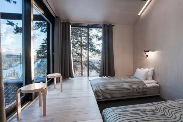 Gäste können in diesem wundervollen Rückzugsort aus insgesamt sieben einzigartigen und individuell eingerichteten Baumhäusern auswählen, die von einem Vogelnest bis zu einem Ufo reichen und von Top-Designer kreiert wurden und perfekt in einem Kiefernwald eingebettet wurden. Ohne Chemikalien zu verwenden oder Bäume zu fällen, wurde das Treehotel unter ökologisch nachhaltigen Gesichtspunkten sorgfältig durchdacht, um der atemberaubenden natürlichen Schönheit rundum gerecht zu werden.