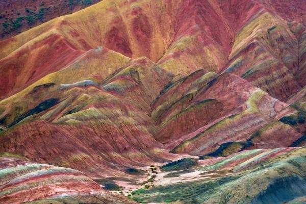 - in Zhangye das Naturphänomen der prächtigen Regenbogenberge bestaunen