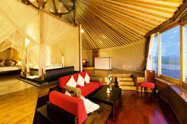 Das Terelj Hotel & Spa ist Mitglied der Small Luxury Hotels of the World und erinnert an einen Landpalast aus dem 18. Jahrhundert mit eleganten Marmorböden, edlen Stoffen, Antiquitäten sowie zeitgenössischer mongolischer Kultur. Das Hotel verfügt über insgesamt 52 Zimmer und Suiten, die komfortabel ausgestattet sind.