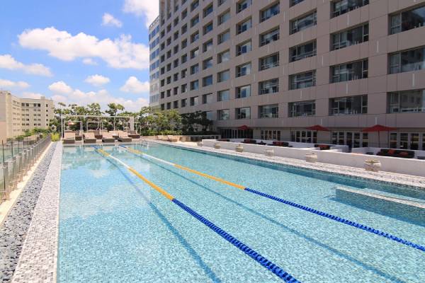 Der Außenpool lädt zu einem erfrischenden Bad in der Sonne ein, und der gut ausgestattete Fitnessraum sorgt für die nötige Fitness.