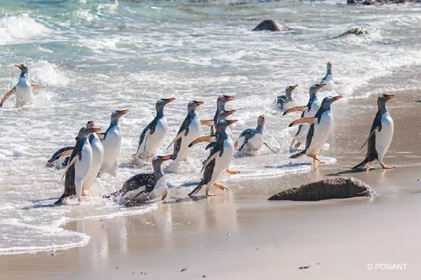 Ihre Reise ins Herz des Südatlantik beginnt mit der Entdeckung der Falklandinseln. Begleitet von Seiwalen fahren Sie durch den Archipel mit seinen zweihundert Inseln. Die wilde Schönheit der Küsten reicht von weißen Sandstränden über scharfe Klippen bis zu windgepeitschten Graslandschaften und hohem, sich wiegendem Gras.