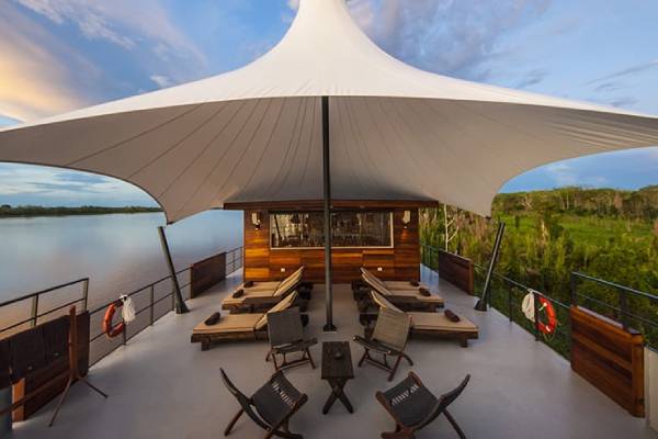 Die Aria Amazon wurde von dem bekannten peruanischen Architekten und Designer Jordi Puig entworfen und speziell für den gehobenen Luxus im Amazonasgebiet gebaut – mit minimalen Auswirkungen auf die empfindliche Umwelt des Amazonasflusses und des Regenwaldes.