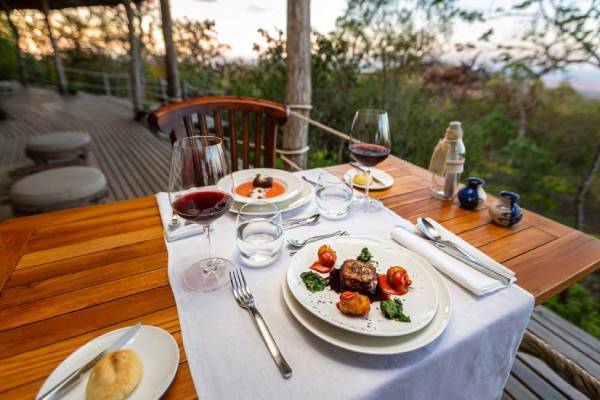Die Gäste können sich am Kamin in der zentralen Hauptlodge versammeln, um den Sonnenuntergang zu genießen, die kreativen Gerichte des Küchenchefs im Panorama-Speisesaal probieren oder die Ruhe im Infinity-Pool mit herrlichem Meerblick genießen.