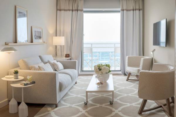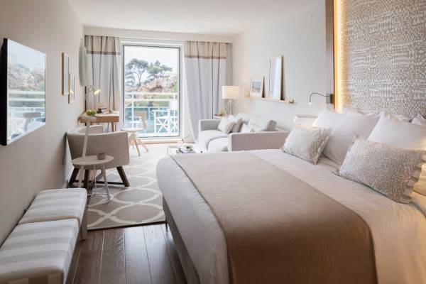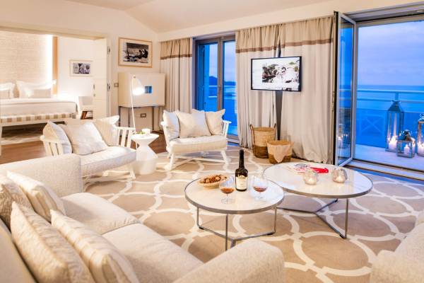 Das luxuriöse Hotel verfügt über insgesamt 91 stilvolle Zimmer und Suiten mit herrlichem Blick auf das Meer, wovon einige Zimmer auch einen Balkon besitzen.