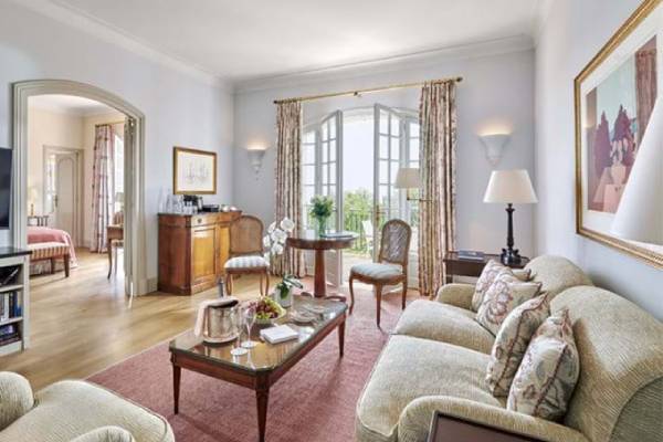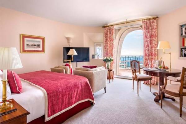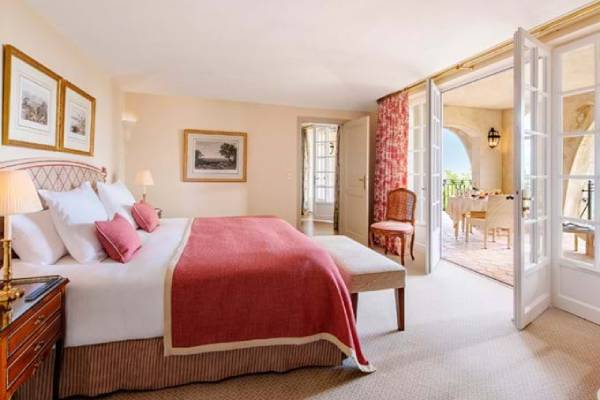 Das luxuriöse Schlosshotel verfügt über insgesamt 46 Zimmer, Suiten und private Villen, die luxuriös eingerichtet sind und eleganten französischen Charme versprühen. Von den Zimmern eröffnen sich bezaubernde Blicke auf die üppigen Gärten. Die meisten Suiten verfügen über Terrassen mit Blick auf die atemberaubende Landschaft, die das Hotel umgibt. Die privaten Villen punkten mit Panoramablicke auf das Meer.