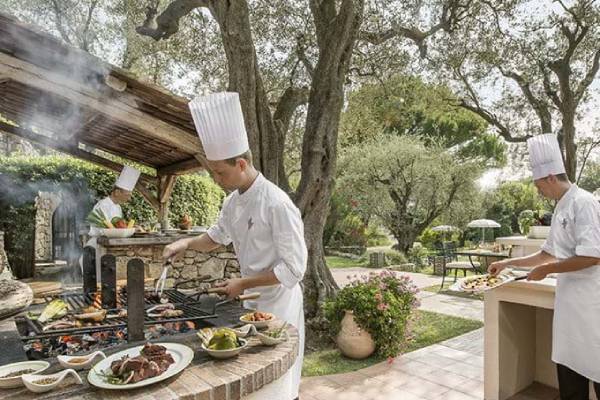 Das schöne Sommerrestaurant L’Oliveraie im Schatten eines alten Olivenhains bietet leichte Mittagessen und köstliche Salate, gegrilltes Steak und frischen Fisch an. An der eleganten Pool Bar kann man sich Mocktails, Cocktails oder andere Drinks sich munden lassen.