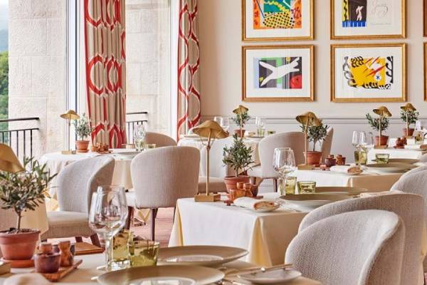 Das mit einem Michelin-Stern ausgezeichnete Restaurant Le Saint Martin serviert feinste Küche mit herrlichem Blick über die Landschaft bis hin zum blau glitzernden Mittelmeer.