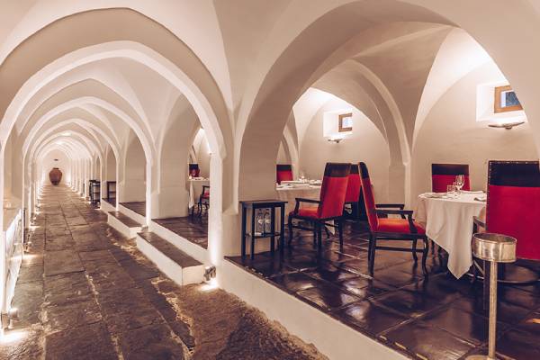 Die Bar befindet sich in der ehemaligen Klosterküche und die ehemalige Zisterne ist heute eine Weinbar, in der erfahrene Sommeliers erlesene Weinen der Region kredenzen.