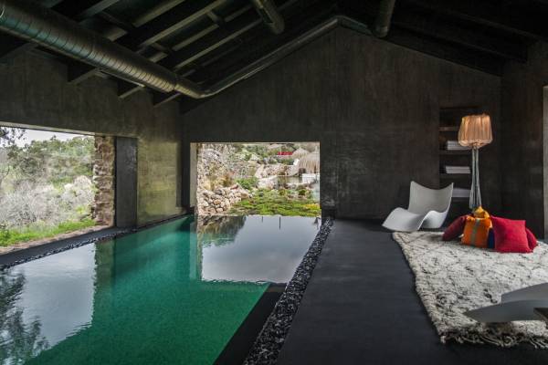Das luxuriöse Anwesen verfügt über einen Spa-Bereich mit einem beheizten Innenpool, Saunen, einer Yoga-Plattform sowie einem Außenpool, der mit Felswasser gespeist wird.