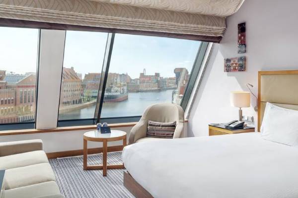 Am Ufer der Mottlau lockt das 5-Sterne-Hotel Hilton Gdańsk seine Gäste mit einer idealen Lage in der malerischen Altstadt von Danzig. Das luxuriöse Hotel eignet sich perfekt für einen Städtetrip und zur Erkundung der interessanten Hafenstadt. Nur wenige Schritte von dem berühmten mittelalterlichen Krantor entfernt, erreicht man den langen Markt fußläufig in rund 600 m.