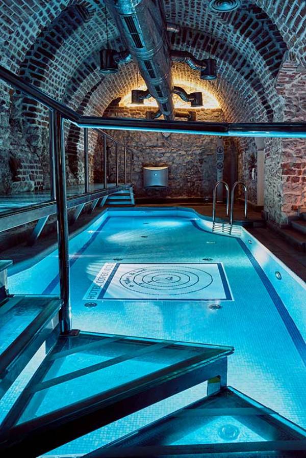 Im Gewölbekeller befindet sich ein kleiner Wellnessbereich. Das Copernicus Spa von L’Occitane verfügt über zwei Behandlungsräume, eine Sauna und einen kleinen Pool.