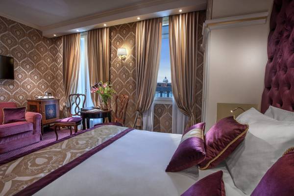 Die insgesamt 53 Zimmer und Suiten sind individuell gestaltet und mit klassischen venezianischen Möbeln eingerichtet. Je nach Zimmerkategorie eröffnen diese Blicke auf die Stadt oder wunderschöne Ausblicke auf die Lagune. Auf der Gästeliste des Hotels standen schon namhafte Namen, u.a. der Komponist Tschaikowsky, der in diesem Haus zu den ersten drei Sätze der 4. Symphonie inspiriert wurde.
