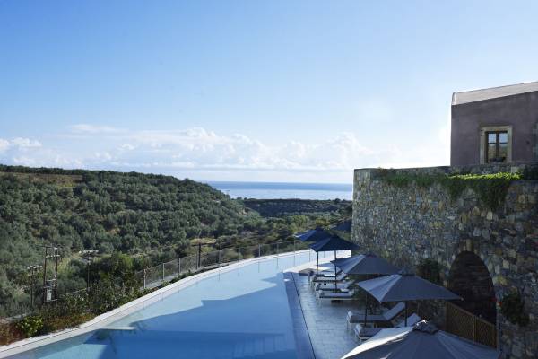 Zu den Einrichtungen des luxuriösen Hotels gehört auch ein großzügiger Infinity-Pool, der einen wunderschönen Blick auf die Ägäis bietet. Das Kinsterna Spa, das sich im Herzen des alten Herrenhauses befindet, ist ein wahrhaft wundervoller Ort mit Hammam und Whirlpool. Hotelgäste