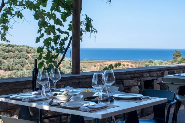 Zu den Speisemöglichkeiten im Kinsterna Hotel gehören eine Taverne im Freien und eine Poolbar. Alle Restaurants verwenden lokale Zutaten und der Hauswein ist köstlich und wird aus der jahrhundertealten Malvasia-Traube im hoteleigenen Weinberg hergestellt. Das hoteleigene Weingut sowie die Weinberge können die Gäste während ihres Aufenthaltes auch besuchen.