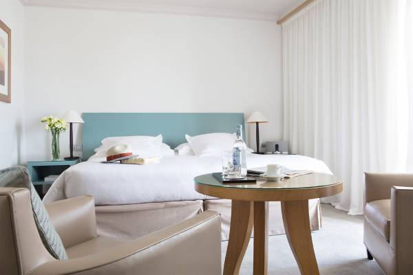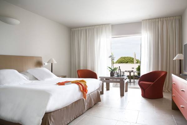 Das Hotel verfügt über insgesamt 49 Gästezimmer, Suiten, Apartments und Villen, die alle in einem eleganten Stil mit aus Pastelltönen und warmem Terrakotta eingerichtet, um eine entspannte Atmosphäre zu schaffen. Jedes Zimmer im Hotel verfügt über einen Balkon oder eine Terrasse mit herrlichem Blick auf den Garten oder die Bucht.