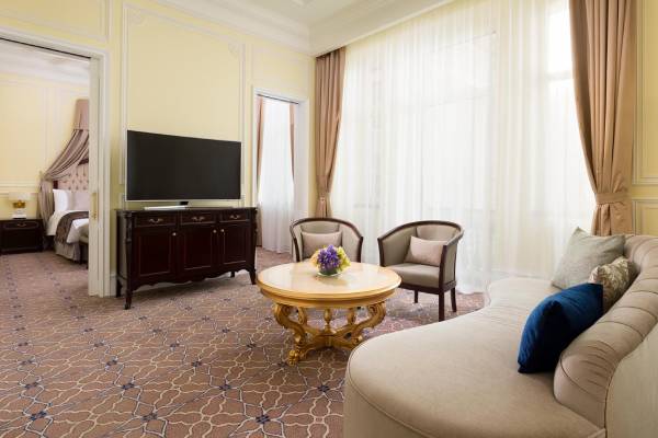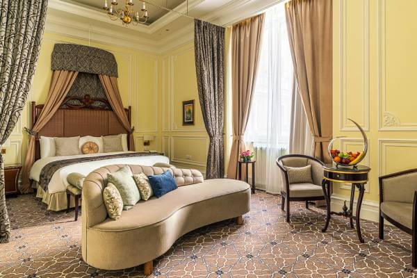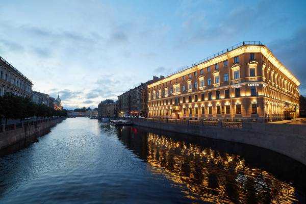 Das 5-Sterne-Hotel befindet in einem historischen Herrenhaus aus dem 19. Jahrhundert mit Blick auf die majestätische St. Isaakskathedrale.