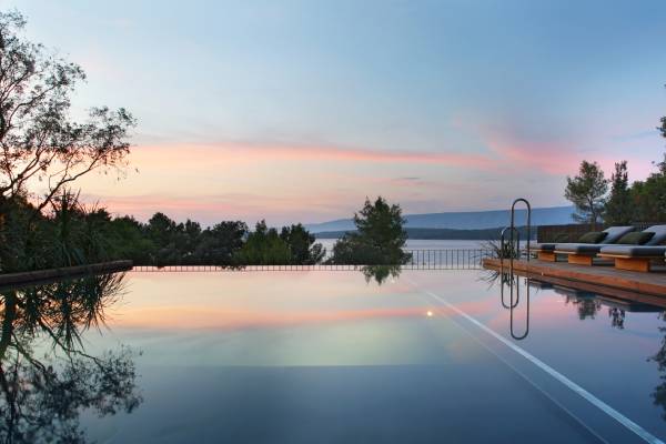 Neben den privaten Pools in den Suiten und Villen bieten auch die beiden Pools im Resort entspannende Stunden. Auf gemütlichen Liegestühlen im Schatten von Olivenbäumen kann man im Infity-Poolbereich mit Blick auf die Adria die Seele baumeln lassen. Eine geräumige Sonnenterrasse bietet der Pool mit Meerblick.