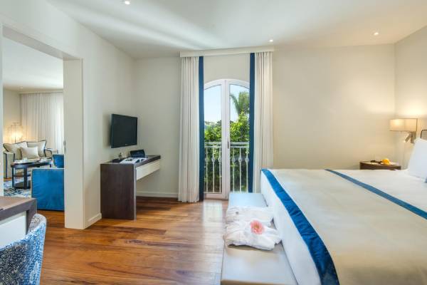 Das zur Leading Hotels of the World zählende 5-Sterne-Resort verfügt über insgesamt 170 elegante Zimmern und Suiten sowie 5 Villen mit Privatpools. Sie alle eröffnen einen wunderschönen Blick auf das Meer oder auf die wunderschöne Gartenanlage. Die Hotelräumlichkeiten wurden an die landestypische Architektur angepasst und fügen sich sehr harmonisch in die Landschaft ein.