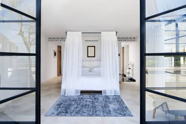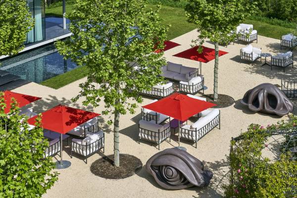 Das Anwesen fügt sich perfekt in die umliegenden Gärten und Weinberge ein und ist ein ausgezeichneter Rückzugsort für diejenigen, die Kunst schätzen. Jeder Bereich dieses außergewöhnlichen Hotels verfügt über zeitgenössische Kunst mit hochwertigen Designermöbeln.