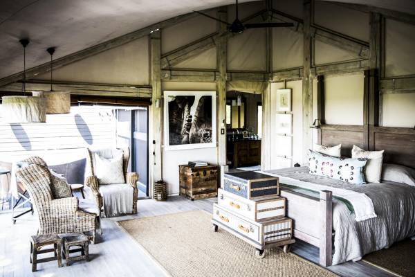 Jedes Zelt verfügt über eine Terrasse mit einem abgeschiedenen Kupferbad im Freien und einem privaten Plunge-Pool mit Blick auf die endlosen Lagunen des Okavango-Deltas.