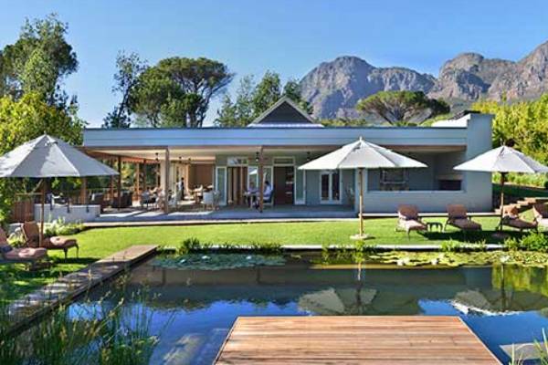 Das luxuriöse Boutique-Hotel befindet sich neben dem Weingut Vrede en Lust unterhalb des imposanten Simonsberg-Gipfels.