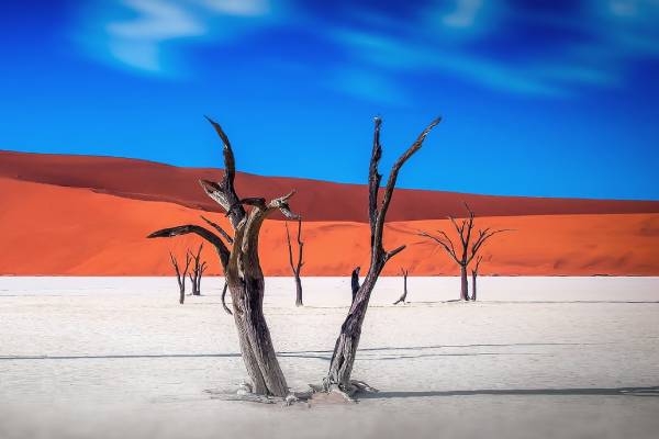 Genießen Sie Ihren Aufenthalt in einem luxuriösen Rückzugsort in der Wüste mit spannenden Aktivitäten, die die von Ihrer Lodge angeboten werden. Dazu gehören u.a. am Morgen geführte Fahrten zu den spektakulären orangefarbenen Sanddünen von Sossusvlei (UNESCO-Weltnaturerbe) in der Namib-Wüste, die zu den höchsten der Welt zählen, sowie zur Salztonpfanne Dead Vlei, eine lebensfeindliche aber dennoch atemberaubend schöne Landschaft mit toten Baumstümpfen – ein Traum für jeden Fotografen!