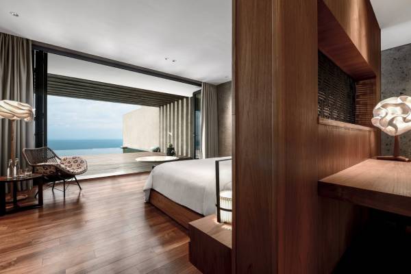 Alle 65 privaten Luxusvillen der Alila Villas Uluwatu verfügen über private Pools und einen großzügigen Außenbereich. Die Innenräume der Villen sind in einem zeitgenössischen Stil eingerichtet, wobei jedoch auch traditionelle balinesische Akzente zu finden sind. Die offene Bauweise bedeutet, dass die Zimmer von der Meeresbrise profitieren, und die riesigen Glasfenster bieten den Gästen einen atemberaubenden Blick auf das Meer.