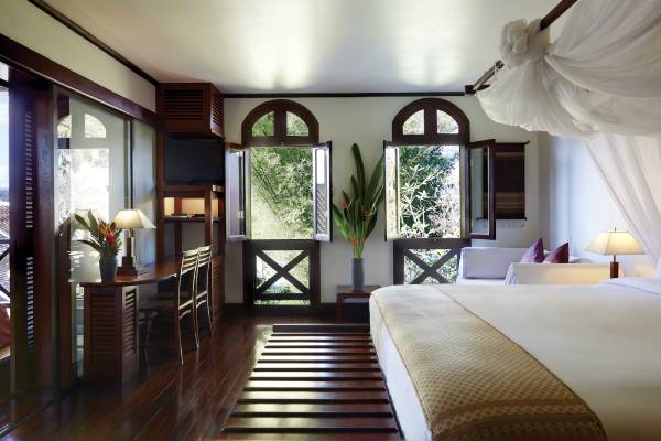 In dieser Ruhe und Abgeschiedenheit lässt es sich entspannt verweilen. Elegant im laotischen Stil sowie mit landestypischen Materialien sind die 34 Zimmer und Suiten eingerichtet. Der schöne Panoramapool lädt zum Entspannen, Sonnenbaden und Abkühlen ein.