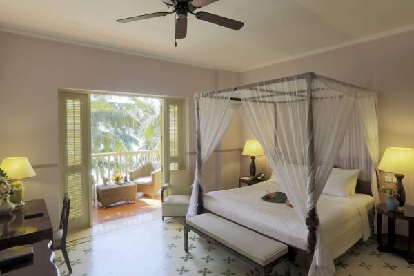 An der Westküste der Insel Phu Quoc befindet sich das luxuriöse Boutique-Hotel La Veranda Resort. Das elegante Anwesen aus dem 19. Jahrhundert beherbergt lediglich 70 Zimmer, die mit Möbeln im Kolonialstil eingerichtet sind und entweder einen Blick in den wunderschönen Garten oder auf das türkisfarbene Meer eröffnen.