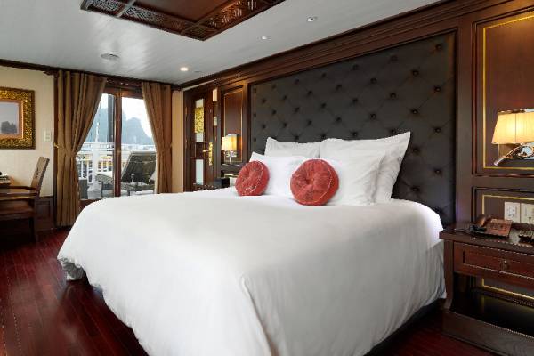 Das exklusive Schiff verfügt über lediglich acht geräumige sowie luxuriös ausgestattete Suiten, die alle Annehmlichkeiten eines 5-Sterne-Luxushotel aufweisen. Teilweise verfügen die Suiten auch über einen eigenen Balkon, auf dem man entspannt bei einer Tasse erlesen Tee oder Kaffee die morgendliche mystische Stimmung in der Halong-Bucht genießen kann. Ein privater Butler sorgt während der Kreuzfahrt für das Wohlergehen der Passagiere und liest jeden Wunsch von den Augen ab.