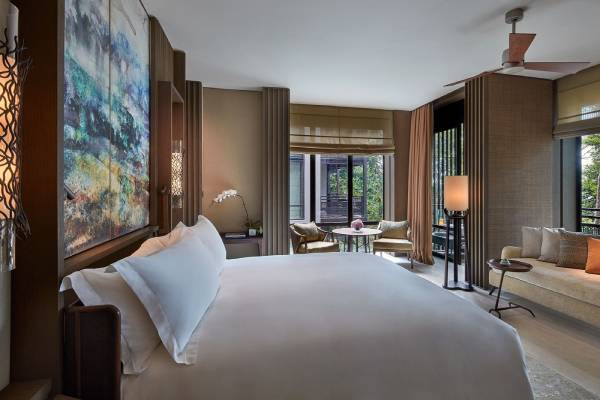 Die insgesamt 90 luxuriösen Zimmer und Suiten sowie die 29 exklusiven Privatvillen mit eigenem Pool sind luxuriös eingerichtet und im Einklang mit dem Regenwald in einem stilvollen Design erbaut. Ein architektonisches Highlands ist der Spa-Bereich, dessen kokonartige Spa-Pavillons über dem türkisfarbenen Wasser der Andamanen-See schweben. Bei leichtem Meeresrauschen können Gäste hier bei wohltuenden Massagen und Wellness-Behandlungen vollkommen zur Ruhe kommen und neue Energien tanken. Wer einfach nur bei einem guten Buch entspannen möchte, kann dies auf den Liegen am Hauptpool oder am Infinity-Pool sowie am wunderschönen 400 Meter langen Sandstrand.